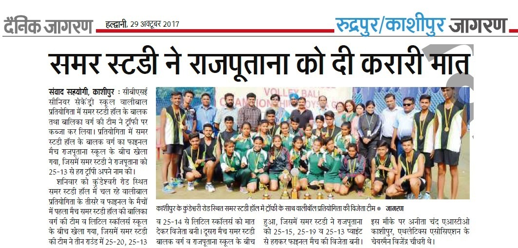 Samar Study Hall School Won CBSE Inter School Volleyball Championship (Boys & Girls) in both the Categories, Boys as well as Girls.