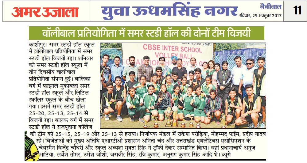 Samar Study Hall School Won CBSE Inter School Volleyball Championship (Boys & Girls) in both the Categories, Boys as well as Girls.