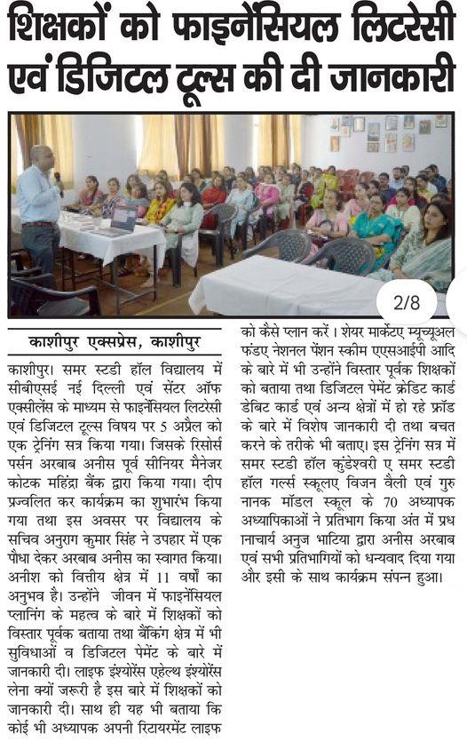 CBSE conducted 1 Day training on Financial Literacy & Digital tools for the teachers at the School premises. Mr. Arbab Anees was the Resource person. He conducted the workshop on the Financial planning, Mutual funds and Cyber frauds in detail. 70 teachers from Samar Study Hall, Samar Study Hall Girls School,Vision Valley and Gurunanak Model School attended the session.