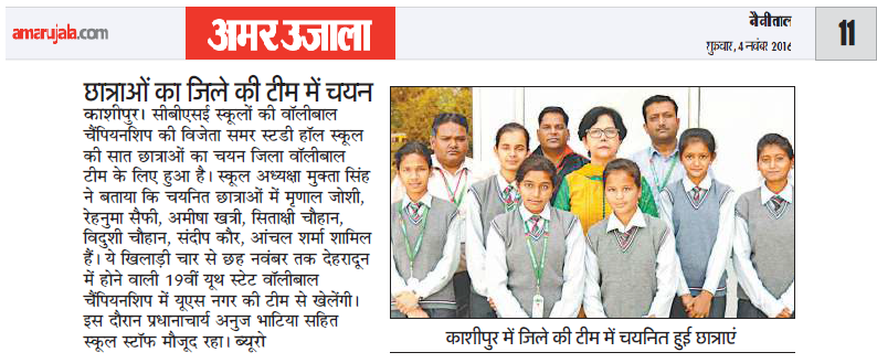 Samar Study Hall Girls got selected in 19th Youth State Volleyball Championship, these students are Mrinal Joshi, Rehnuma Saifi, Amisha Khatri, Shatakshi Chauhan, Vidushi Chauhan, Sandeep Kaur, Anchal Sharma.
