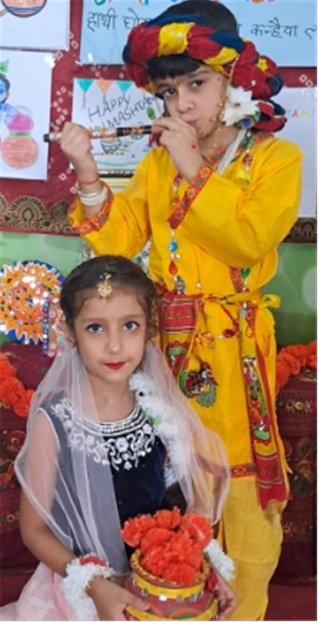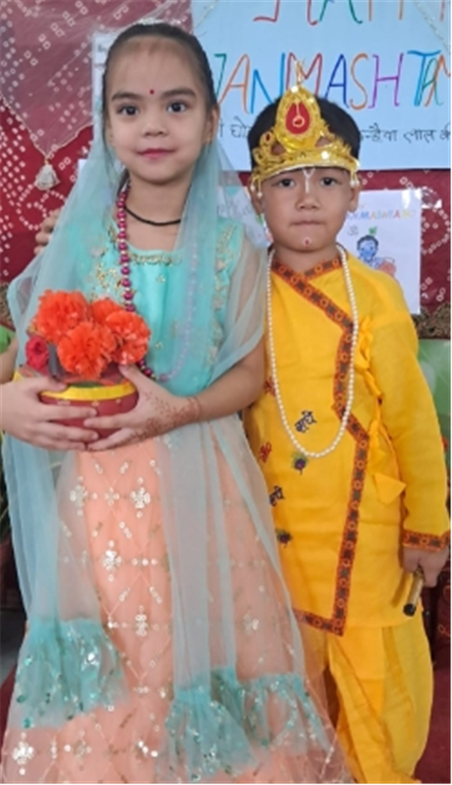 Children dressed as Krishna and Radha during the Janamastmi Celebration at the School. May Lord Krishna and Radha Rani bless us all!!