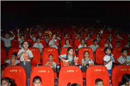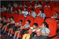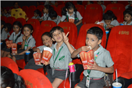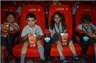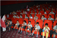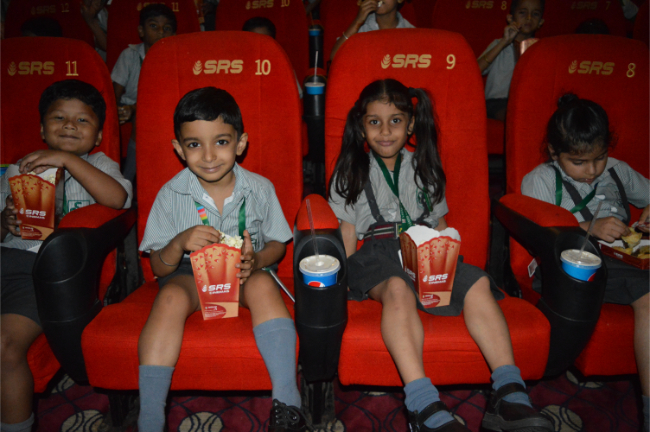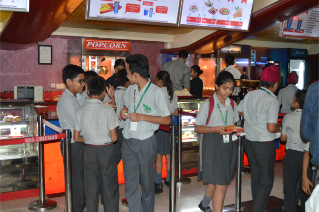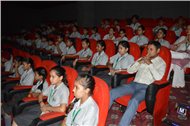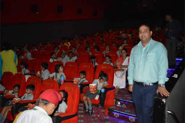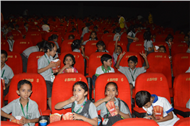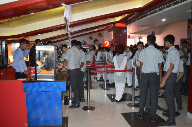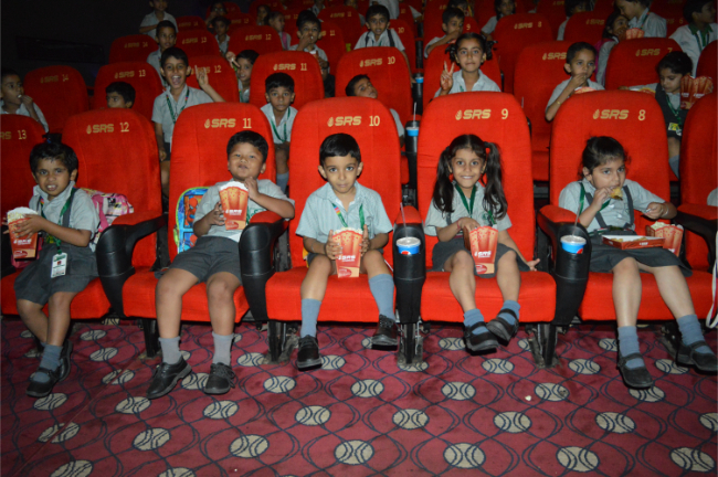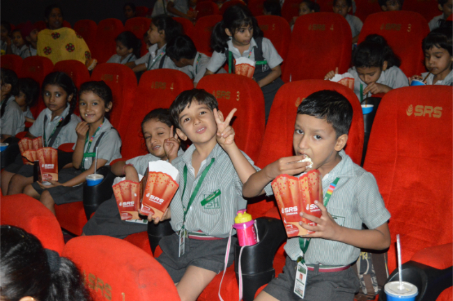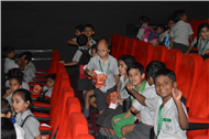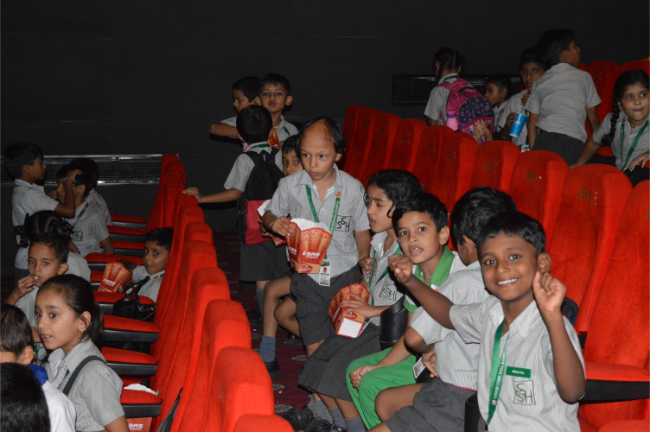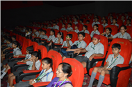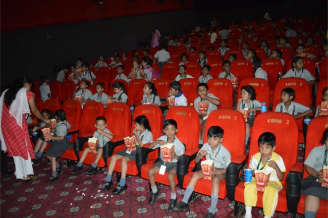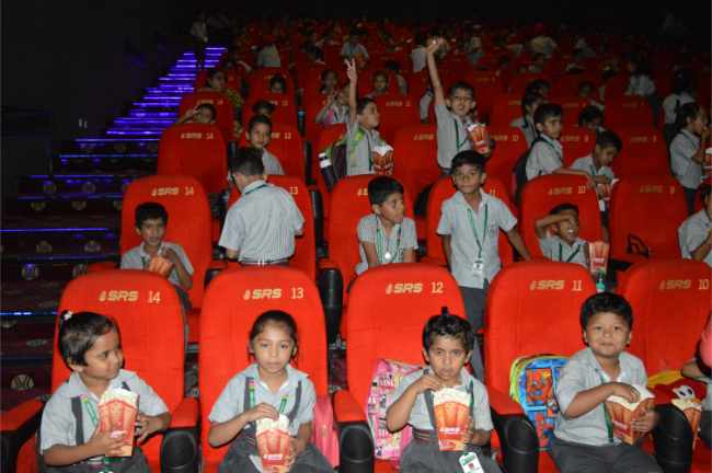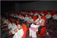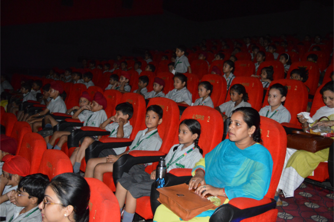 Description: Students enjoying movie in SRS Kashipur. The Lion King (Classes U.K.G to 8) Super 30 (Classes 9 to 12).