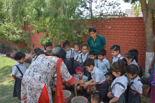 "Germination of seed" activity was conducted in class UKG in which students learnt to sow the seeds and also learnt the importance of growing trees."