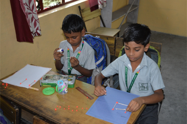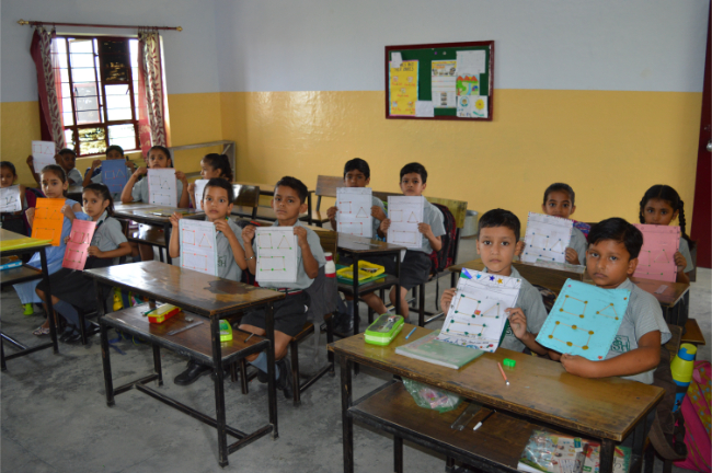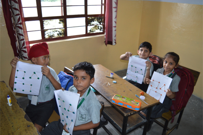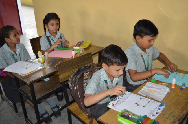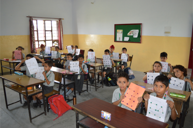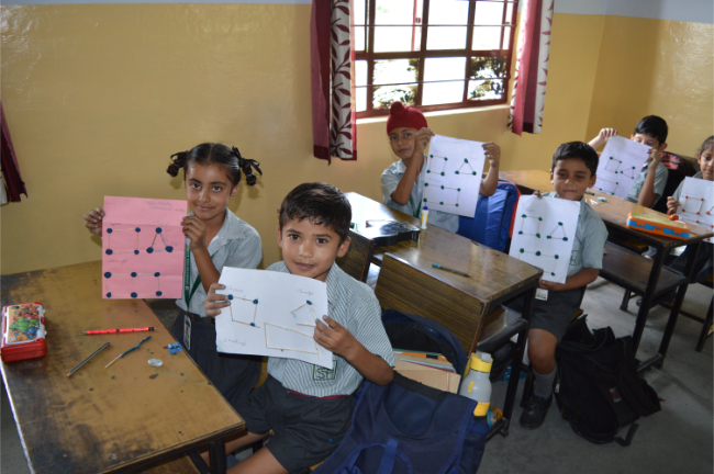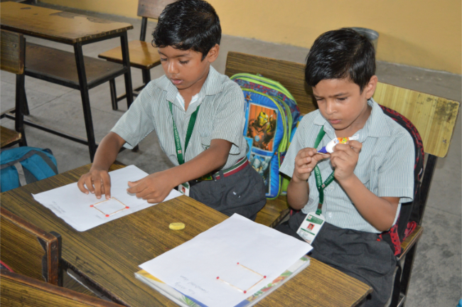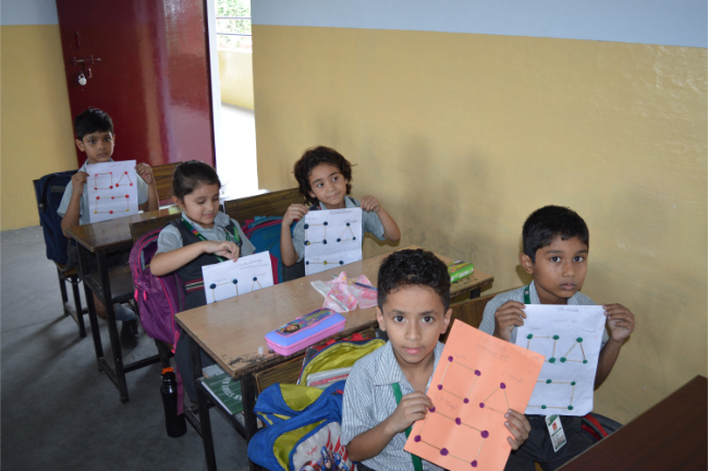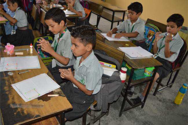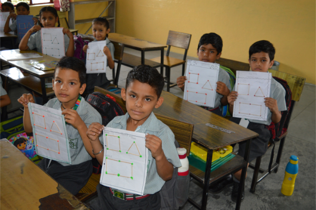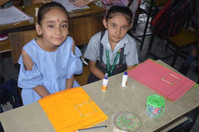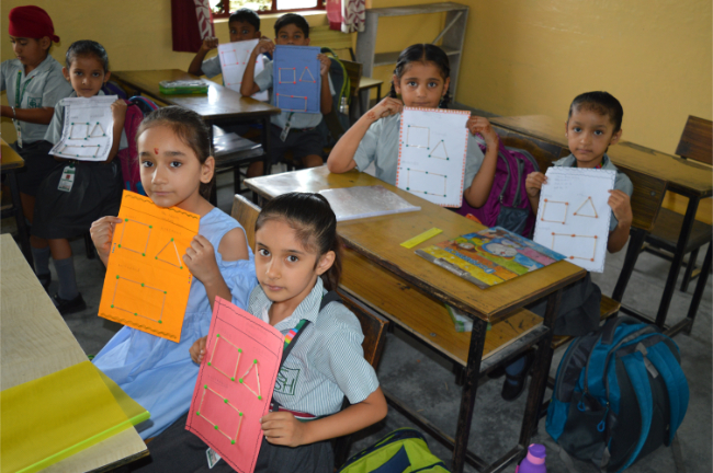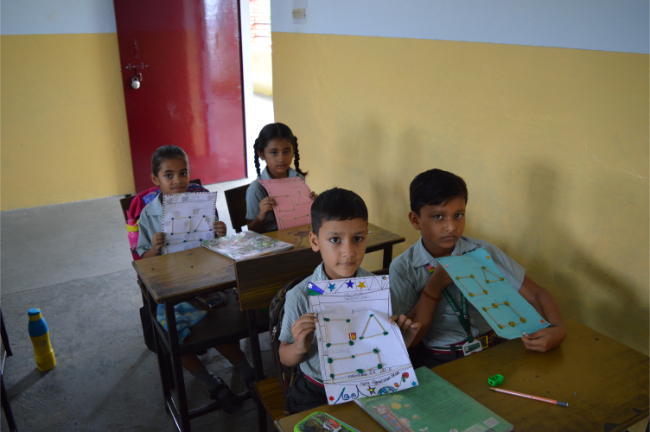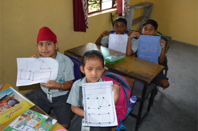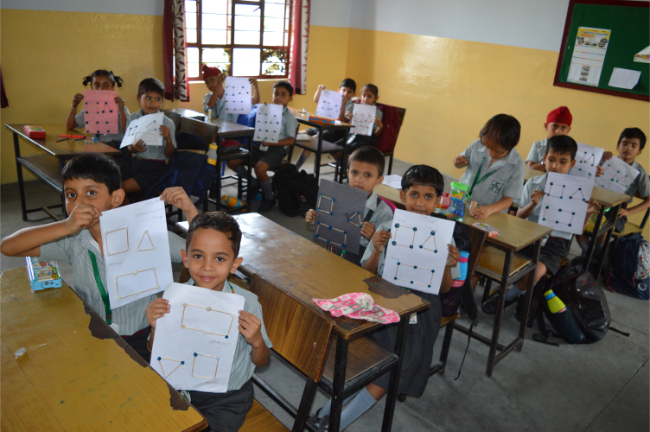 Class-2 Students learning different Geometrical Shapes.
