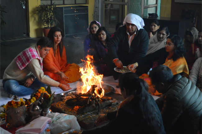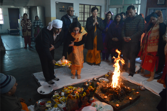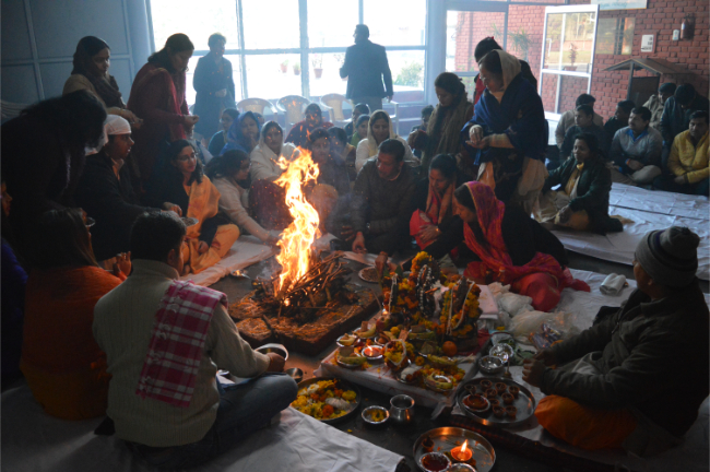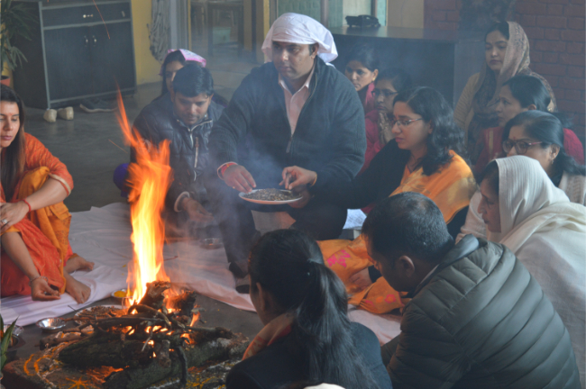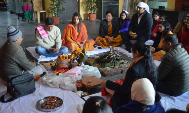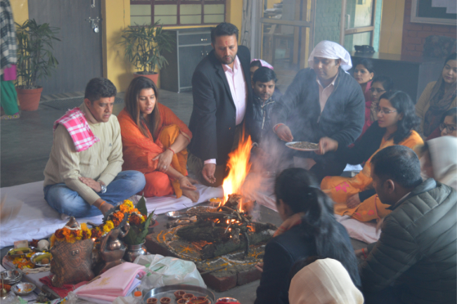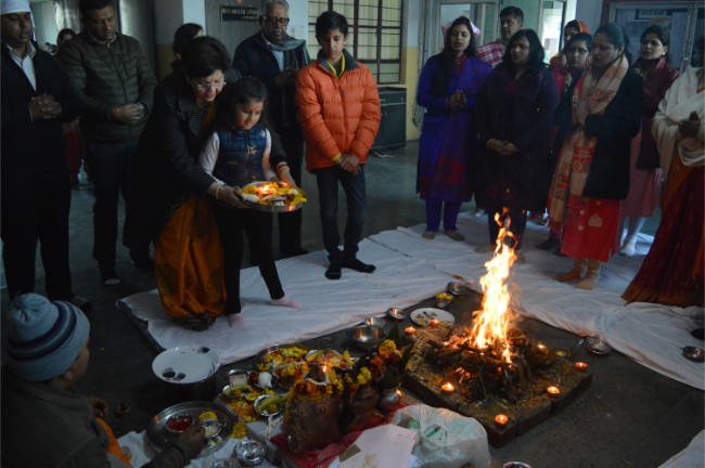 Description: Hawan in Samar Study Hall Sr. Sec. School on the occasion of 'Basant Panchami'.