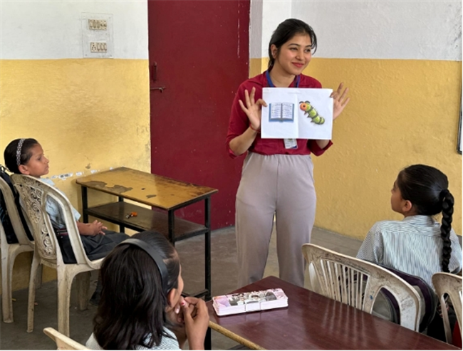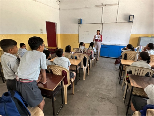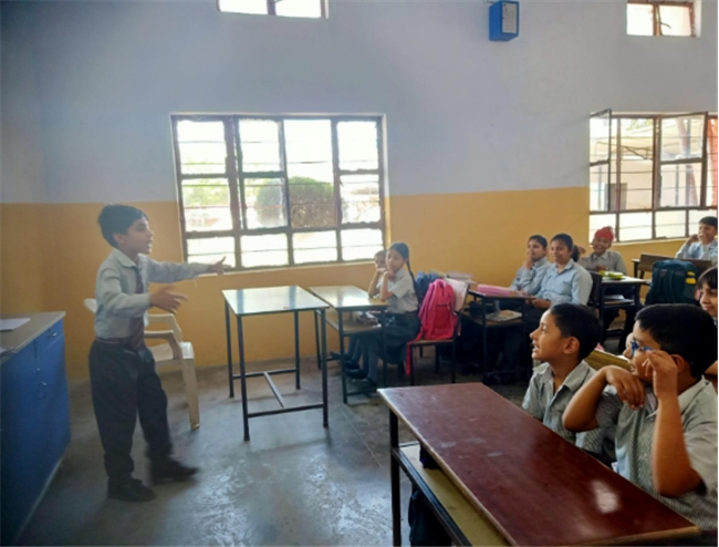In the session, idioms were taught to students through different activities and properties to encourage the usage of idioms in daily lives. Knowledge of idioms will help students become better speakers. An activity called “Idiom charades” were conducted. In the activity, students were given an idiom, they had to act without speaking and the class had to guess which idiom was being enacted. Whenever a team member guessed right, the actor had to point at him and nod affirmatively. This reinforced appreciation motivated the team as a whole.