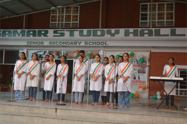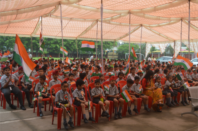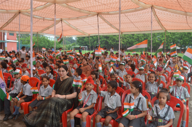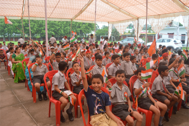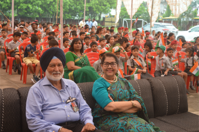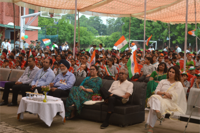 Description: Independence day 2023 Grand Celebration The Chief Guest Wing Commander Pargat Singh ji hoisted the National Flag and shared his experience with students. Wonderful performances Glimpses of the event