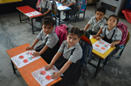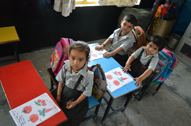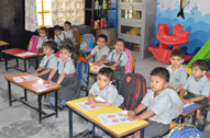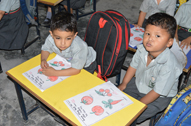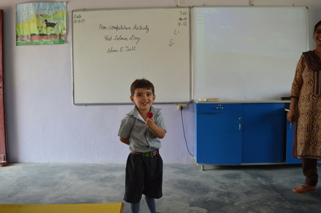 Description: Red Colour Day Celebrated by Class Nursery Students. Students brought Red Colour things for show and tell activity. Tiny tots learnt the poem My Red Balloon and had worksheet to paint it Red.