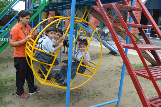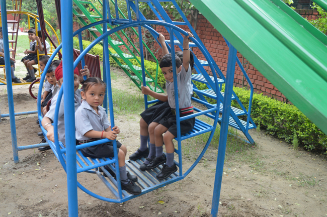 Students of Class Nursery and U.K.G enjoying the new ride.