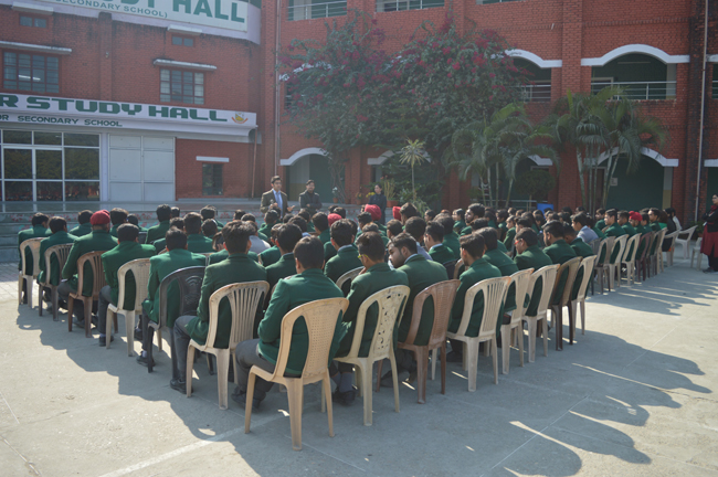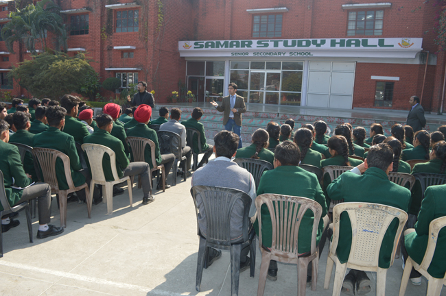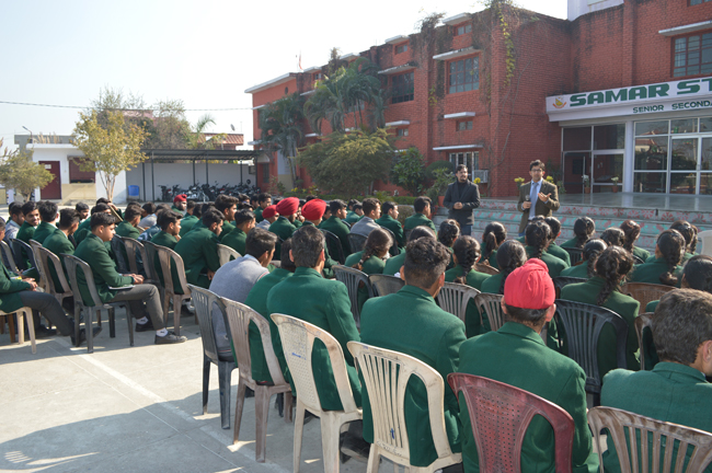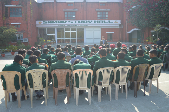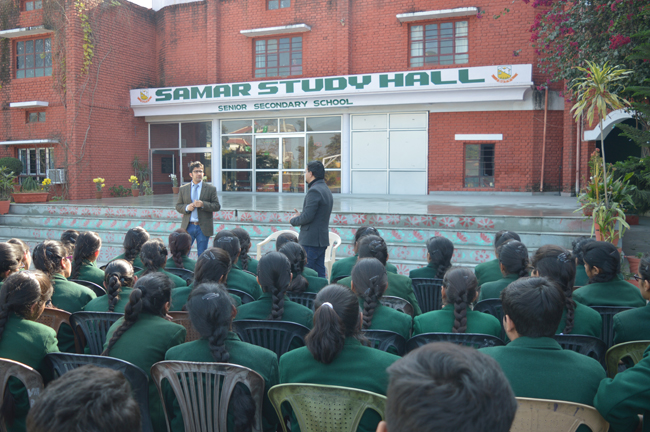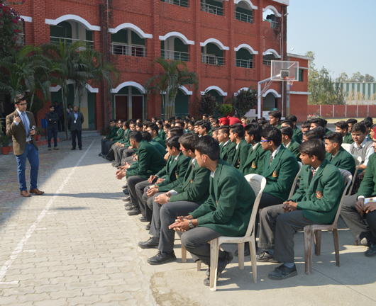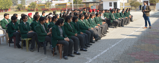 Description: Students of Class XI & XII indulge in a talk with Dr. Parag Rastogi, a researcher in sustainable Architecture. The seminar covered following areas. Climate change On the sensitivity of building to climate Career as civil Engineer Education abroad