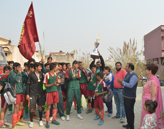 Description: Samar Study Hall won Inter School Football Championship 2016 held at H.S.Memorial Public School organised by H.S.Memorial Public School, Kashipur beating Little Scholars by 4-0 in the finals. Rakesh Negi was adjudged the best defender & Harshit Gusai was adjudged ‘Man of the tournament’. School President Mrs. Mukta Singh congratulated the team & lauded the efforts made by them. School Principal Mr. Anuj Bhatia praised the sportsmanship shown by the players & congratulated the team for their brilliant win. Congratulations SSH!!