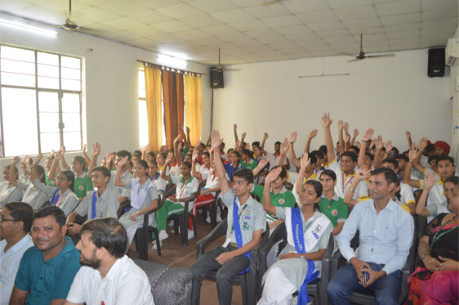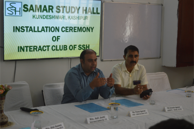 Description: "Good leaders are made,not born. If you have desire and will, you can become an effective leader." The Rotary is a global network of 1.4 millions neighbours friends leaders and problem solver where people unite and take action to create lasting change across the world in a community and in ourselves. The Interact clubs are sponsored by individual Rotary clubs which provides support and guidance. It brings together young people ages 12 to 18 to develop leadership skills while discovery the power of service above self. In our school Interact club was formed in the month of May whose installation ceremony was held on 19th of August,23. In this ceremony young leaders Ishi Agarwal ( President), Nitika Yadav(Vice President), Aditya Mittal (Secretary), Rajveer Singh (Joint Secretary), Naisarg Pandey (Treasurer), Km.Sargam (Sergeant-at-arms), Kavya Bhatia, Archisha Tyagi, Richa Adhikari, Mohd Ubesh, were chosen and responsibilities were given to them to serve the community and the nation.To grace the occasion Rotarian Pawan Agarwal IPDG District 3110,Rotarian Anil Joshi District Interact committee chair, Rotarian Raj Mehrotra CDS Rotary Dist 3110, Rotarian Atul Asawa, President, RC Kashipur, Rotarian Naveen Arora, Secretary, RC Kashipur the School President Mrs Mukta Singh, Secretary Mr Anurag Singh,Principal Mr Anuj Bhatia were also present.