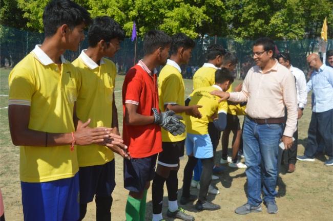 Description: Inter School FUTSAL Tournament started at Samar Study Hall Kundeshwari Kashipur under the Aegis of Dev Bhoomi Sahodaya Kashipur. The tournament was inaugurated by Mr. A.K. Jha ARTO Kashipur and Mr. Vijendra Chaudhary International Athlete, Chairman State Athletics Selection Committee & Mrs. Mukta Singh President Samar Study Hall. Among the prominent guest were Mr. N.C. Baba, Mr. Rahul Pagia Chairman Samar Study Hall Girls School, Mr. Neeraj Kapoor Director Gurukul Foundation School, Mr. Vineet Singhal Director Shemford School, Mr. Pradeep Sapra Principal Chhauni Children’s Academy, Mr. Arpan Sharma Principal Samar Study Hall Girls School, Mr. Lalit Rautela Pioneers Academy, Mr. Anurag Kumar Singh, Mr. Shashank Kumar Singh. Match-1 Pioneers Academy Garhinegi Vs Rajputana College won by Rajputana College Match-2 Genesis International School Vs Maria Assumpta won by Maria Assumpta Match-3 Samar Study Hall Vs Shivalik Holy Mount Academy won by Samar Study Hall Match-4 Sai Public School Vs Orison Scolastica won by Orison Scolastica Match-5 DAV Public School Vs Pioneers Academy Garhinegi won by Pioneers Academy Garhinegi Match-6 Maria Assumpta Vs Little Scholars won by Maria Assumpta.